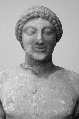kouros; votive inscribed to "Apollo with the silver bow" by Pytheus & Aeschrion (c. 500 BCE)